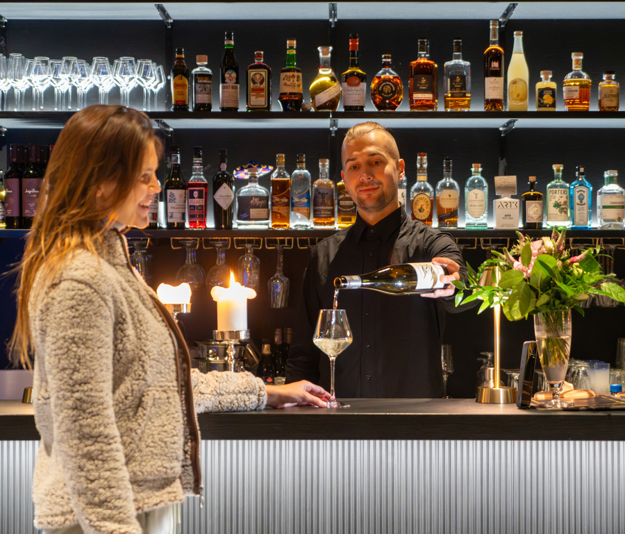 The calm surroundings and natural light create a comfortable and welcoming atmosphere for dining. The same warm setting is perfect for enjoying a good drink and sharing tapas by the Polara fireplace.